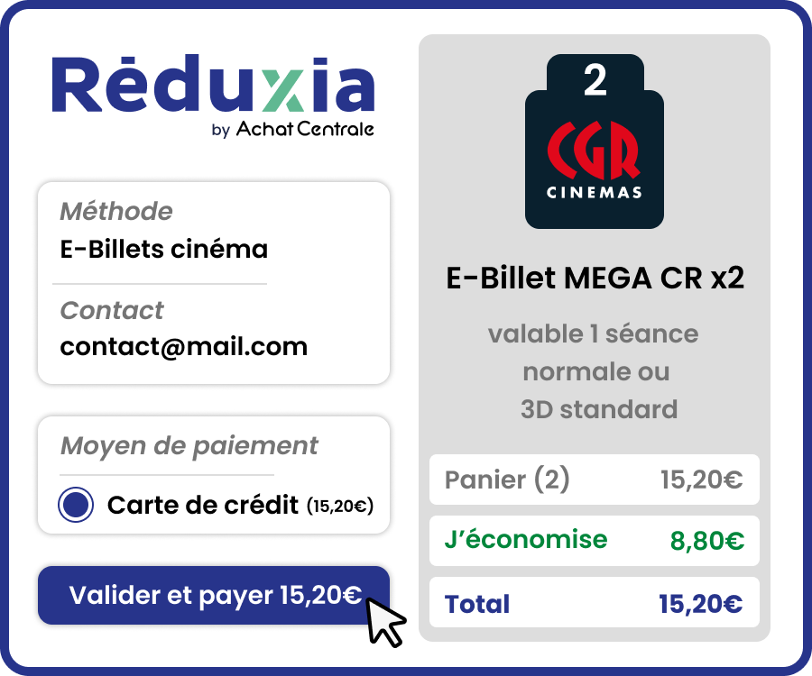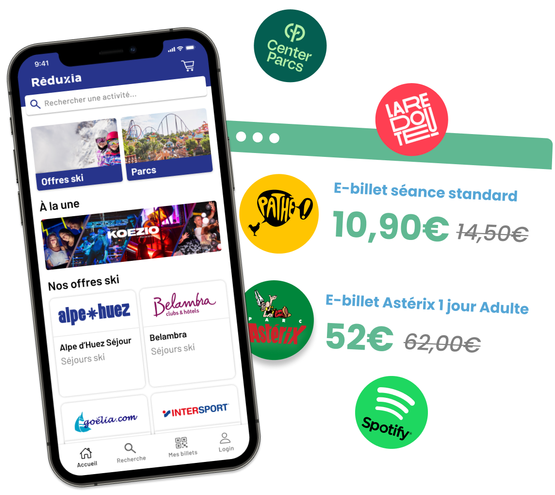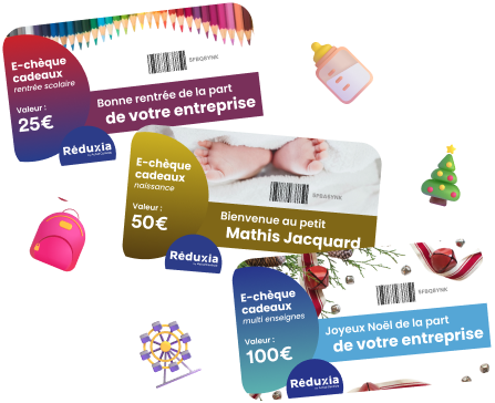 Optez pour nos e-chèques entièrement numériques sur Réduxia : déterminez le montant, nous nous occupons du reste. Vos bénéficiaires recevront un e-mail avec l’accès à un crédit flexible sur la plateforme (cinéma, spectacles, parcs d’attractions, shopping, etc.) durant une durée illimité, utilisable au centime près.